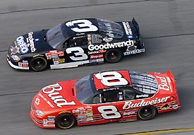Dale Earnhardt and Dale Jr. race in the Rolex 24-hour